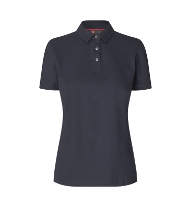 Damska koszulka polo z ekologicznej bawełny z dodatkiem stretchu w ekskluzywnej jakości piké, z lamówką i kontrastowymi guzikami.