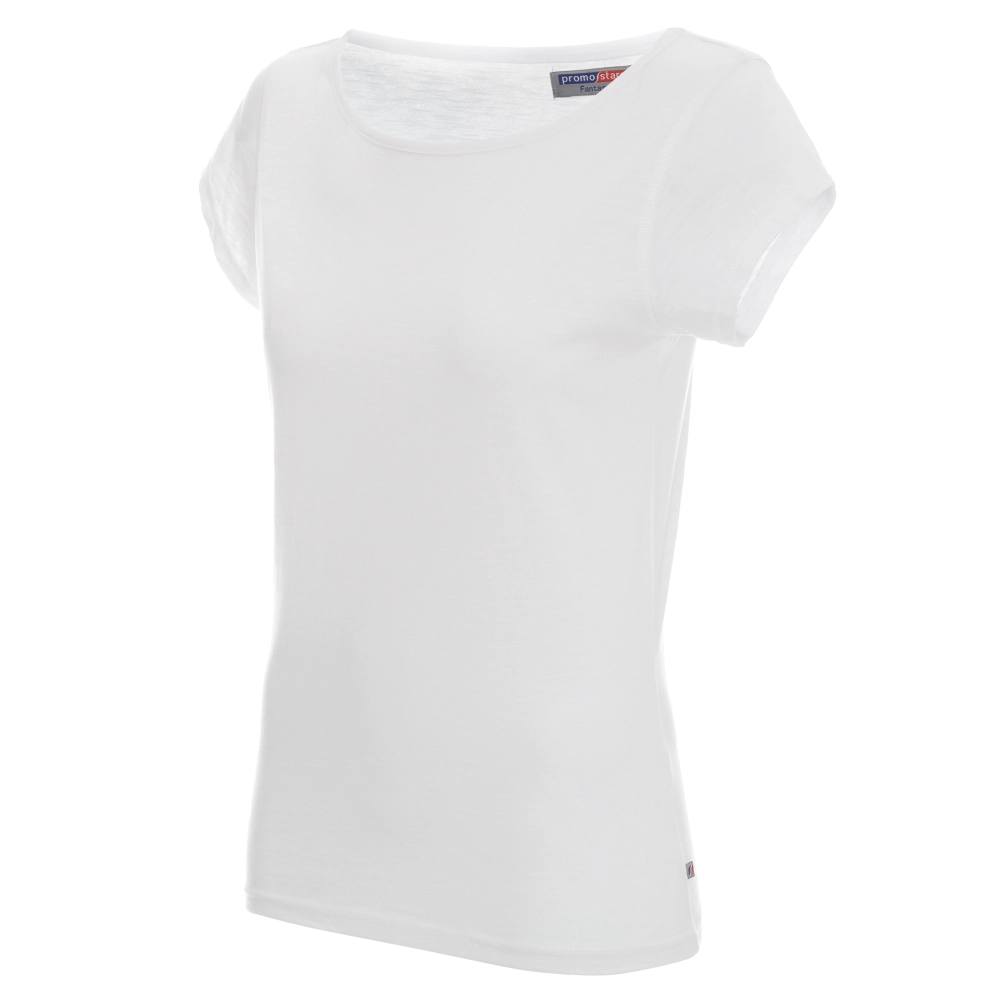 Damska koszulka Promostars Fantasydamski krój (tabela rozmiarów)miękki i gładki materiał typu Slubkołnierz wykończony lamówkądekoracyjne przeszycia na rękawachkolor 48 - skład 70% bawełny, 30% poliestrupopularne metody znakowania:* nadruk (sitodruk)* termotransfer (rozciągliwy Flex, Flock, Colorprint)* haft komputerowy* wszywki żakardowe